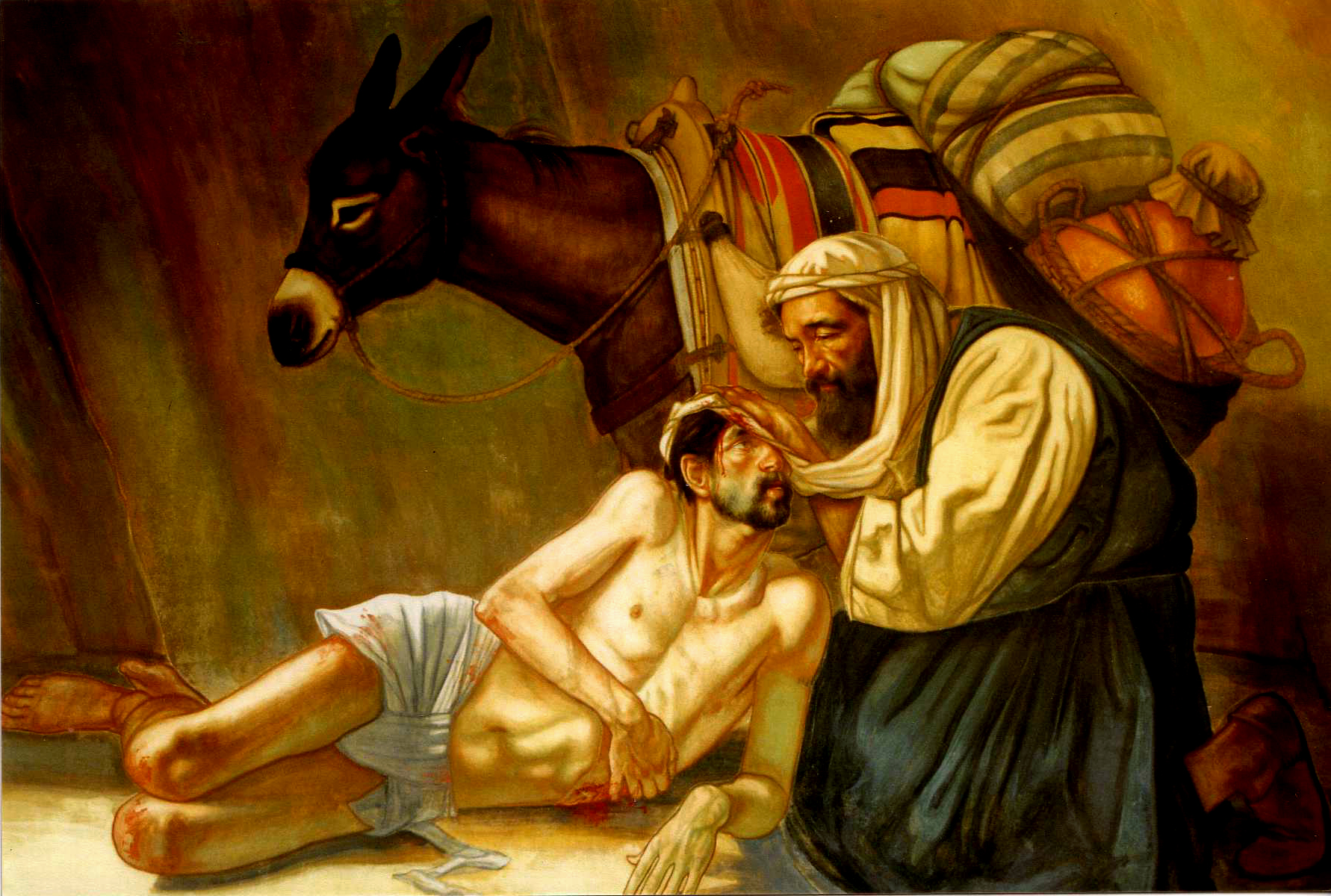 Immediately upon entering the front doors of the Fellowship Hall, a dramatic image of the Samaritan bending over a beaten and bloodied stranger serves as an important reminder of the intimate relationship between the teachings of Christ and the work we are called to do. It measures 8 feet high and 28 feet long and is painted in the true fresco style of the 15th century masters.